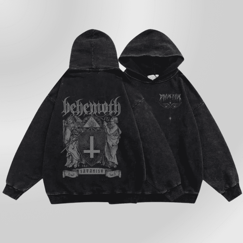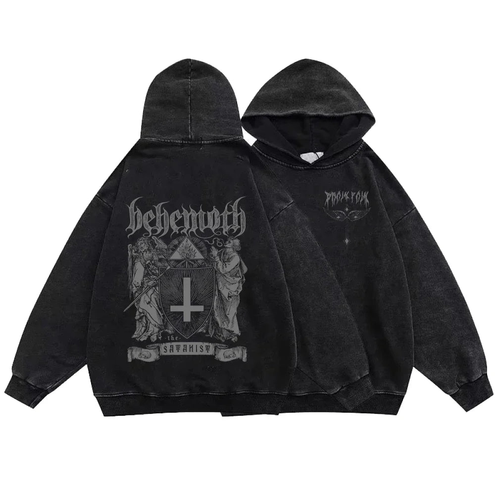Hanorac negru alternativ Grunge cu glugă - Reversed