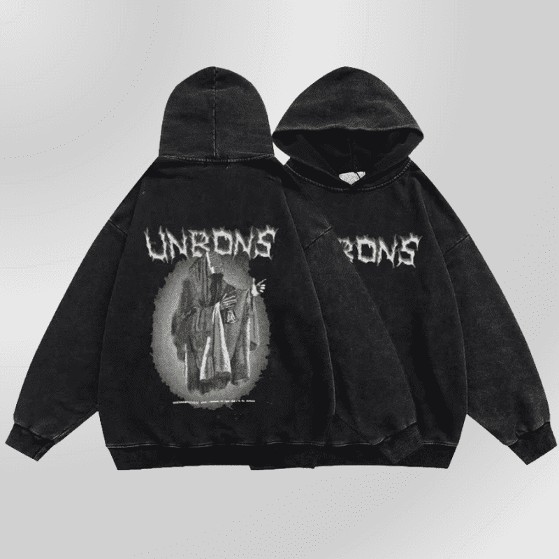 Hanorac negru grunge alternativ cu glugă - Unbons