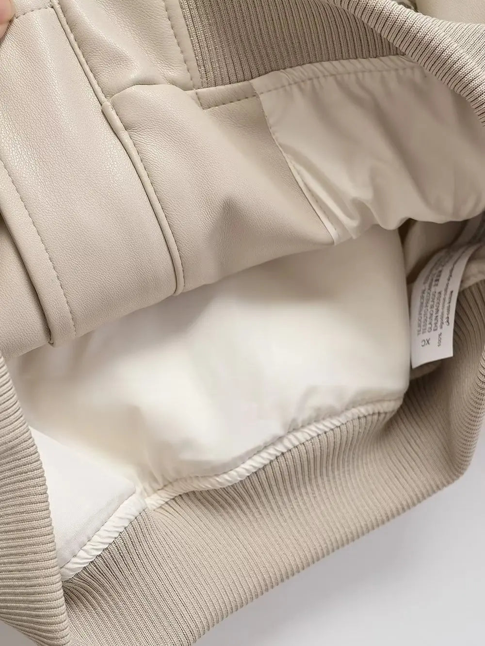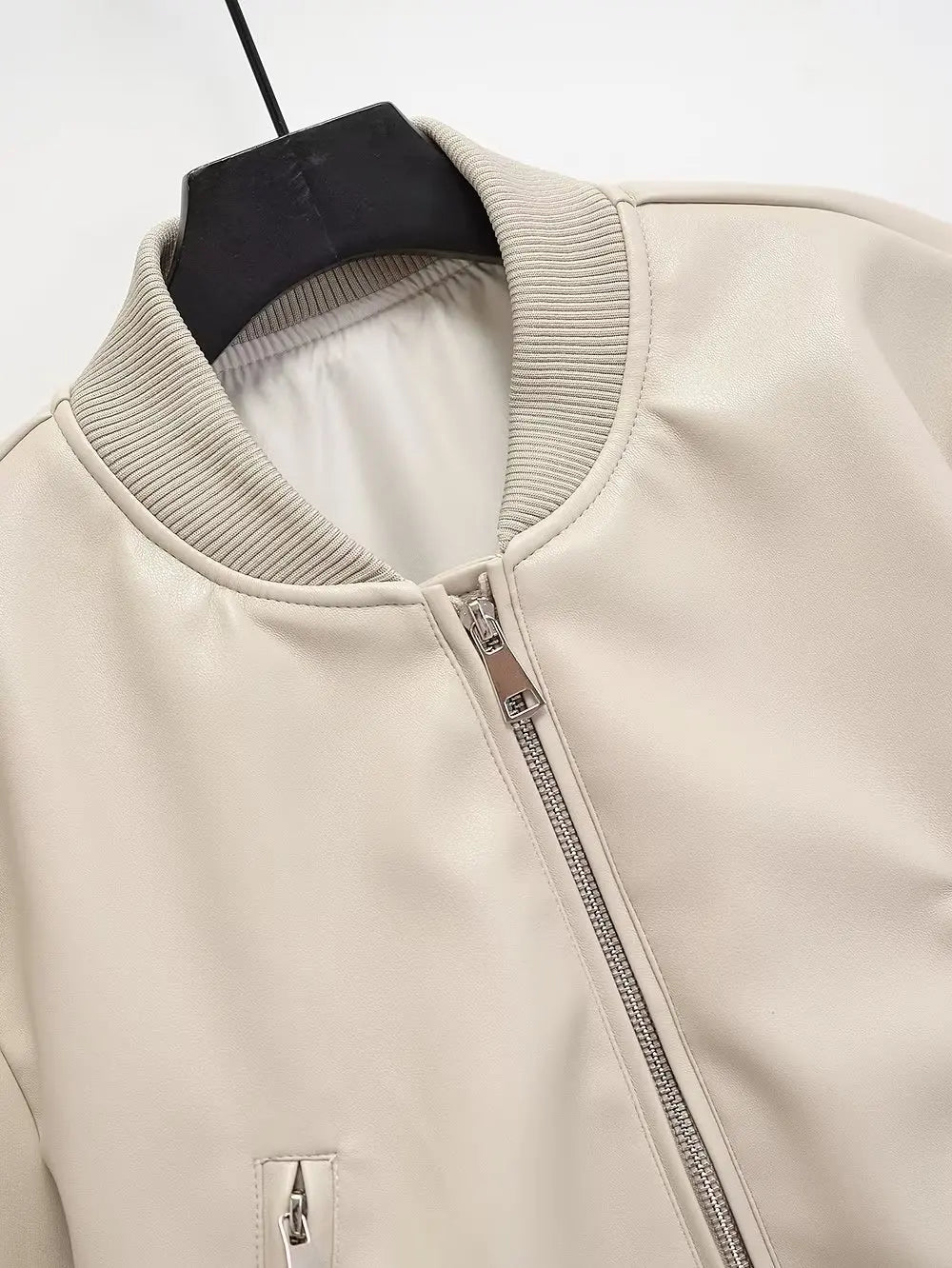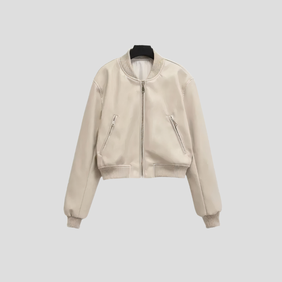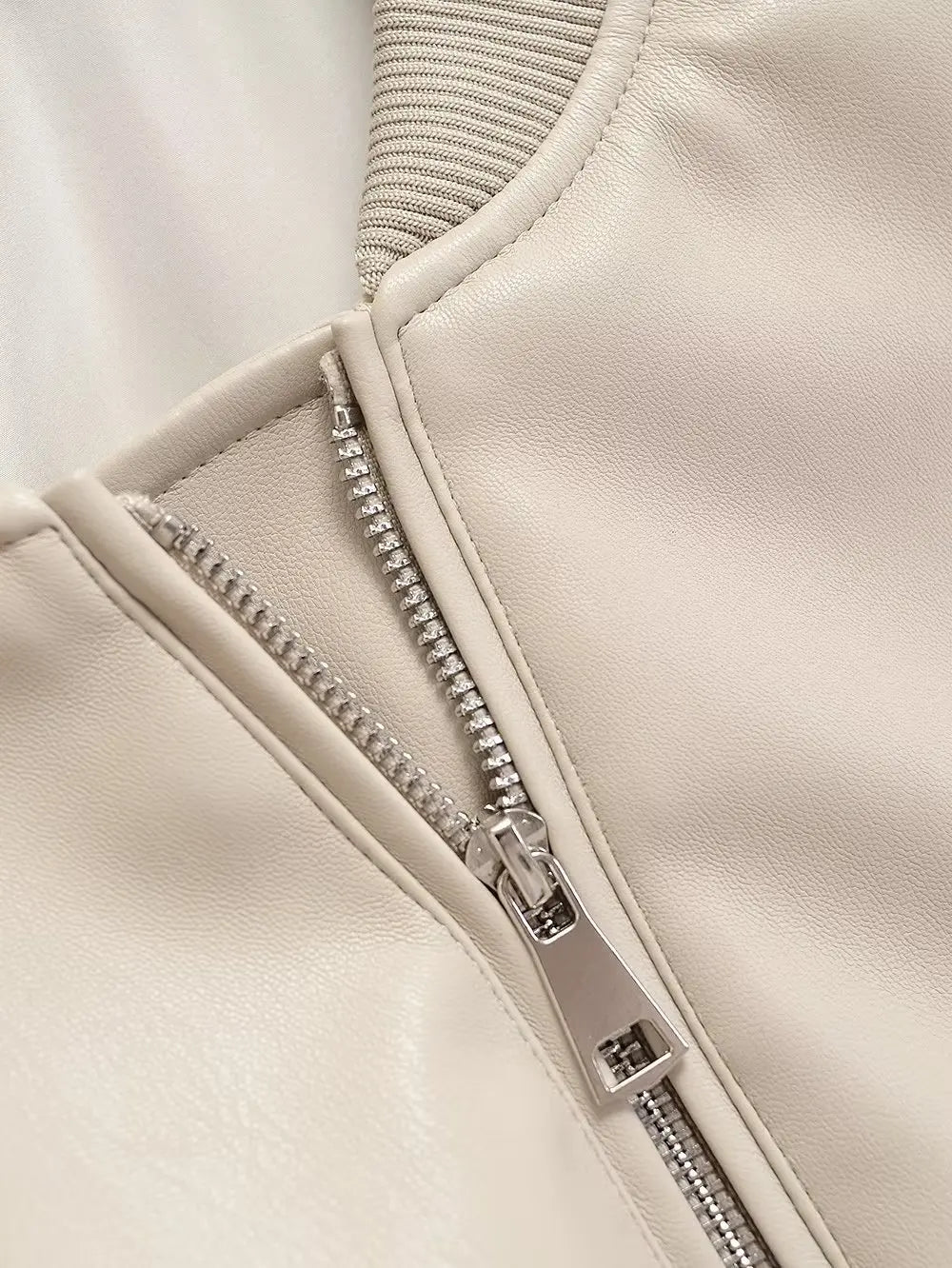 Jachetă bomber bej punk rock cu fermoare și manșete strânse