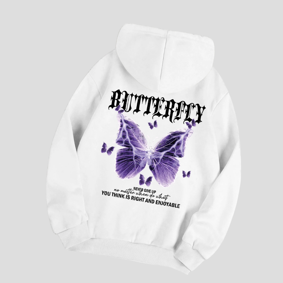 Hanorac punk alb cu fluturi mov și inscripție Vezi opțiunile