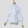 Bluză steampunk albă cu fundă și manșete din dantelă