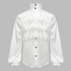 Camăși steampunk albe XXL cu jabou din dantelă și guler înalt