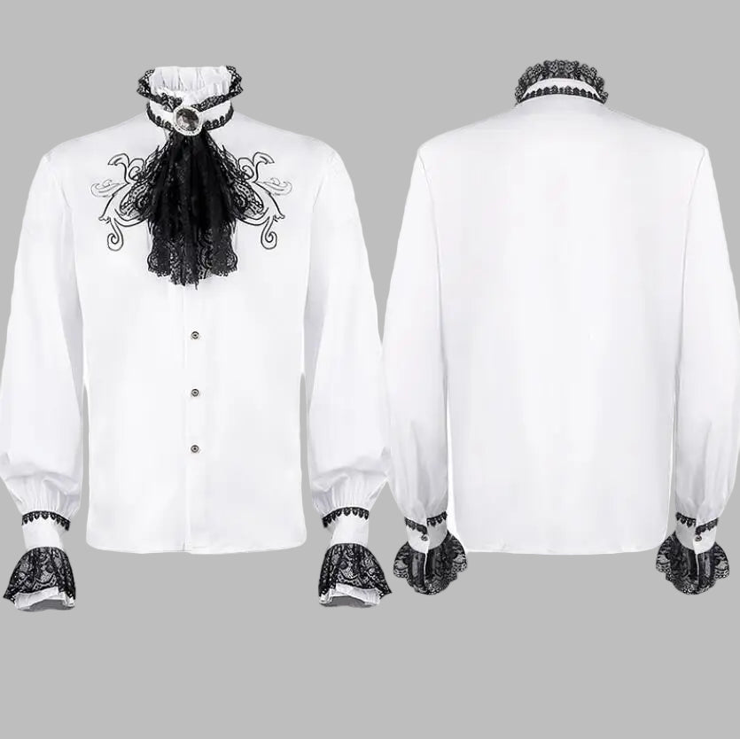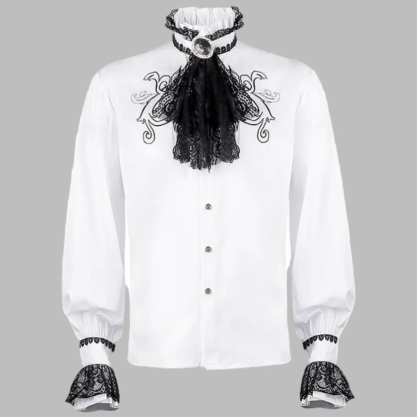 Cămașă steampunk albă cu detalii din dantelă și jabou Vezi opțiunile
