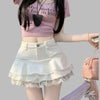 Fustă scurtă albă Jirai Kei din denim cu volan din dantelă Vezi opțiunile