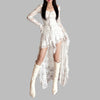 Rochie albă rock cu dantelă și mâneci lungi