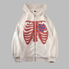Hanorac alb cu fermoar Punk Rock cu imprimeu anatomie coaste