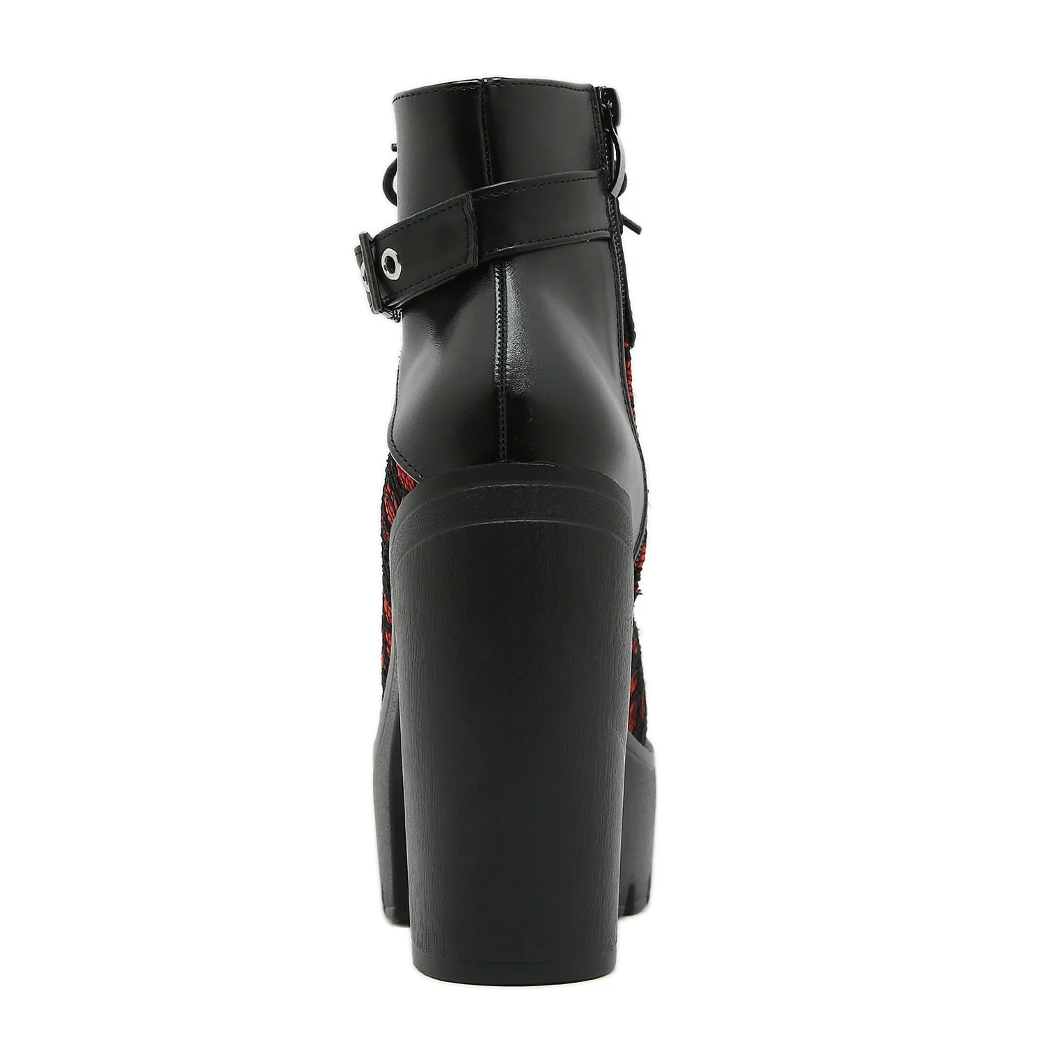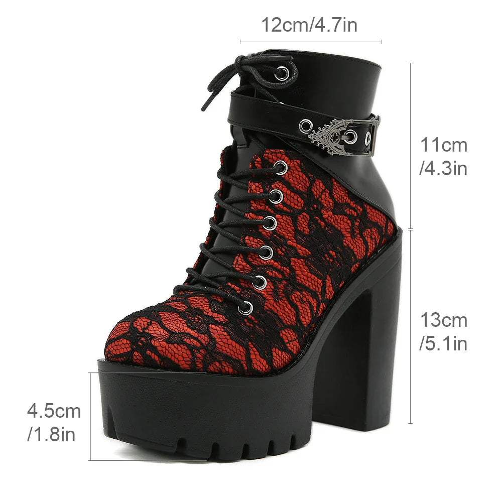 Botine roșii cu toc, cu șireturi și catarame – stil punk rock