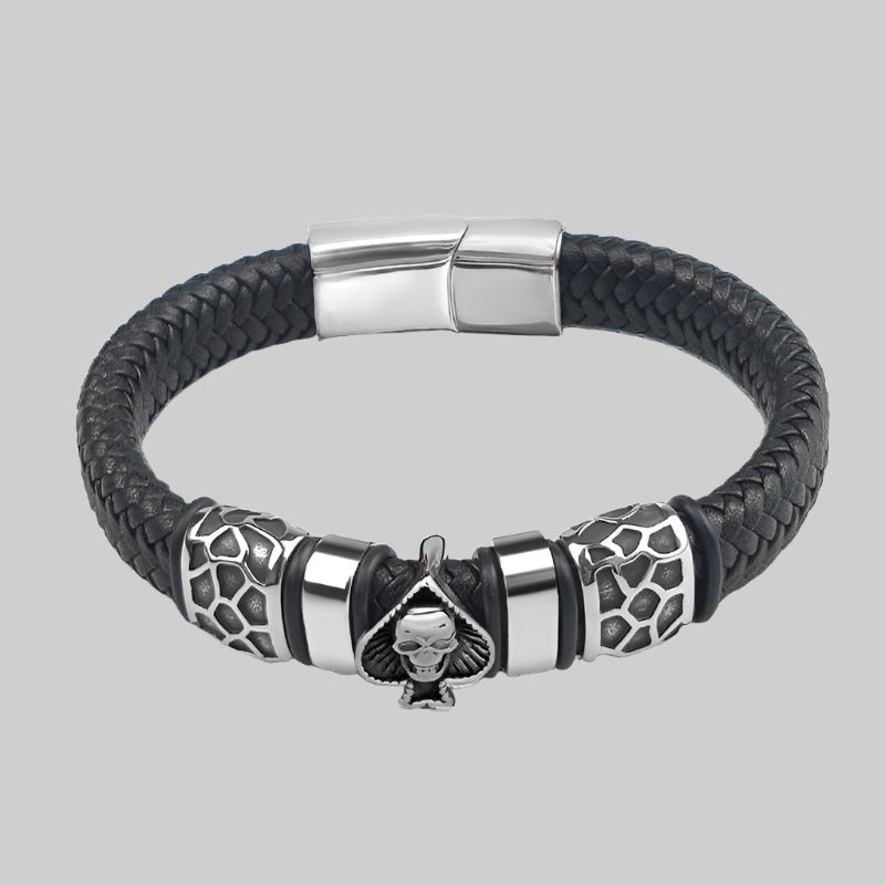 - Material: piele ecologică neagră împletită cu grijă, oțel inoxidabil (durabil și lucios)