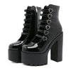 Pantofi gotici de damă cu platformă, negri, lăcuiți, stil metal