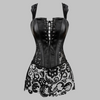 Corset negru din piele ecologică cu dantelă florală – stil burlesc Vezi opțiunile