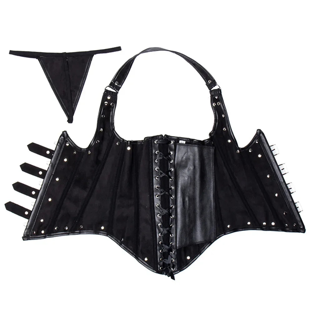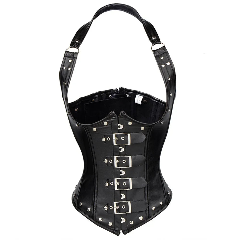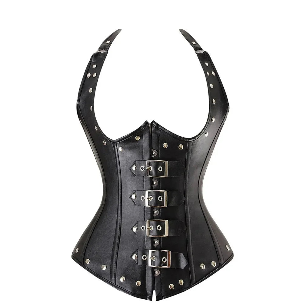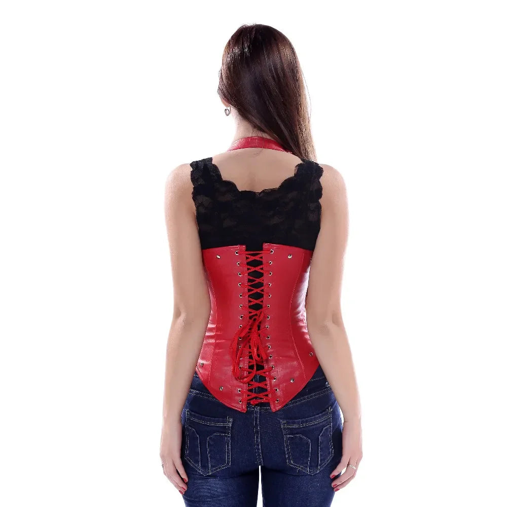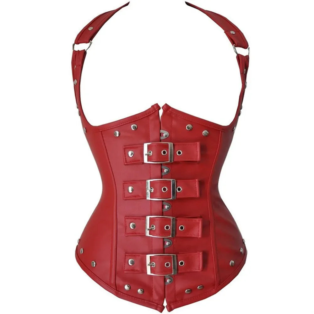 Corset roșu din piele ecologică cu catarame – stil punk rock pentru femei Vezi opțiunile