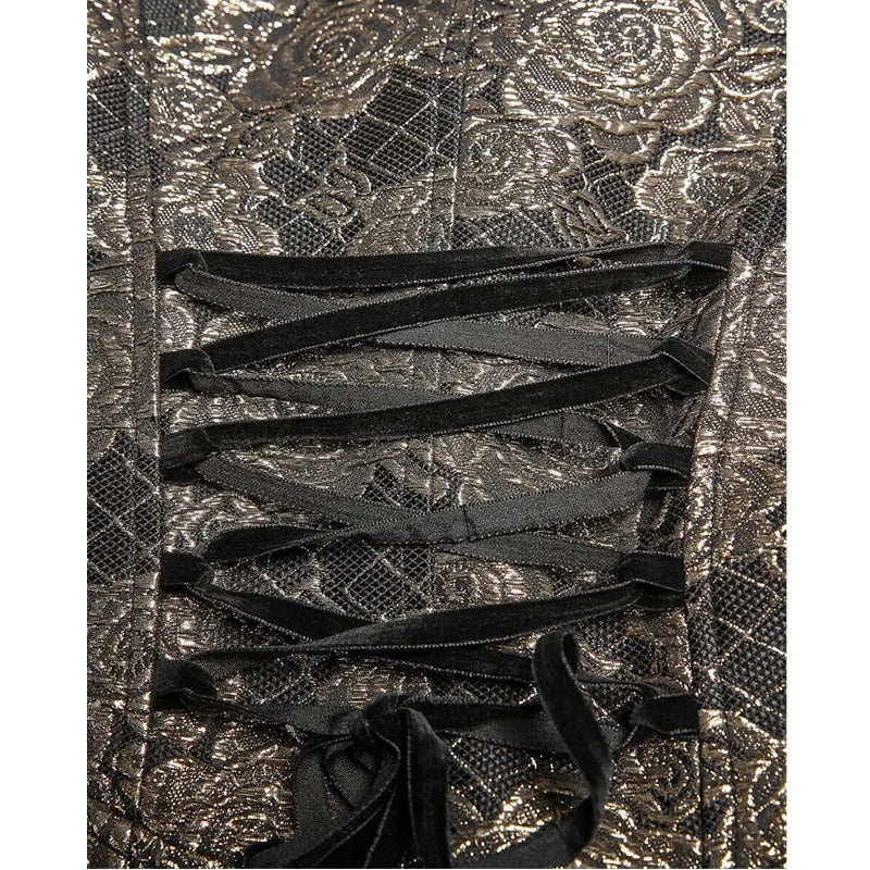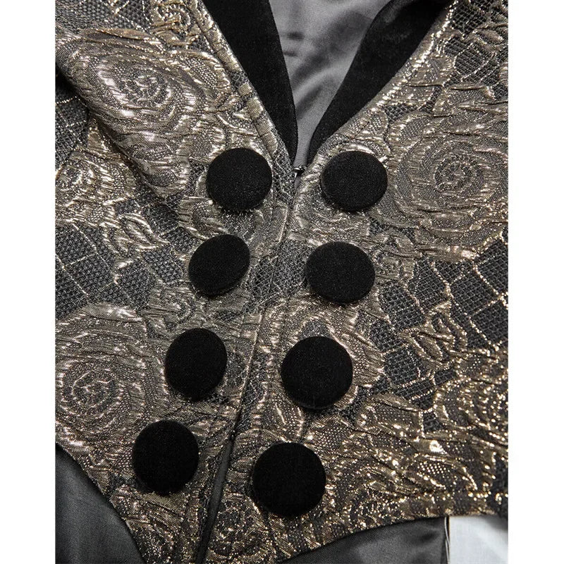 Costum steampunk auriu cu frac și decorațiuni argintii