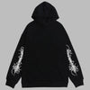 Hanorac negru metal cu glugă și modele albe pe mâneci
