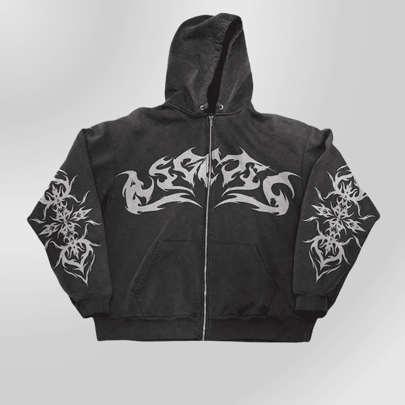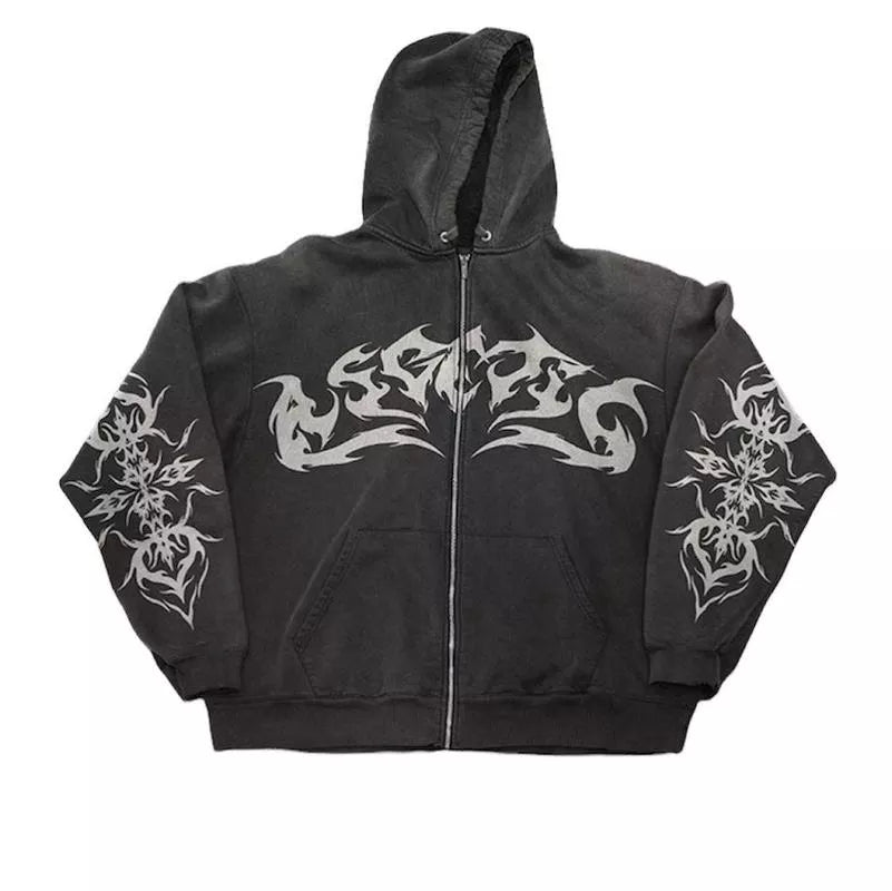 Hanorac negru gotic grunge cu glugă – flacără Vezi opțiunile