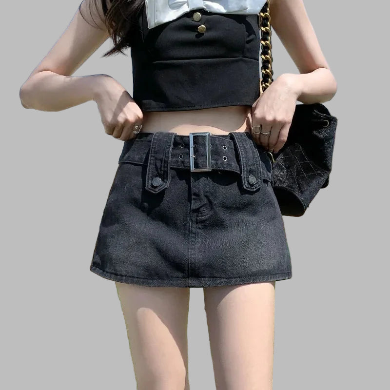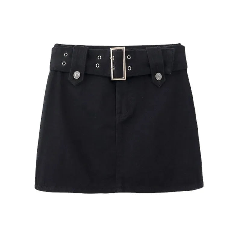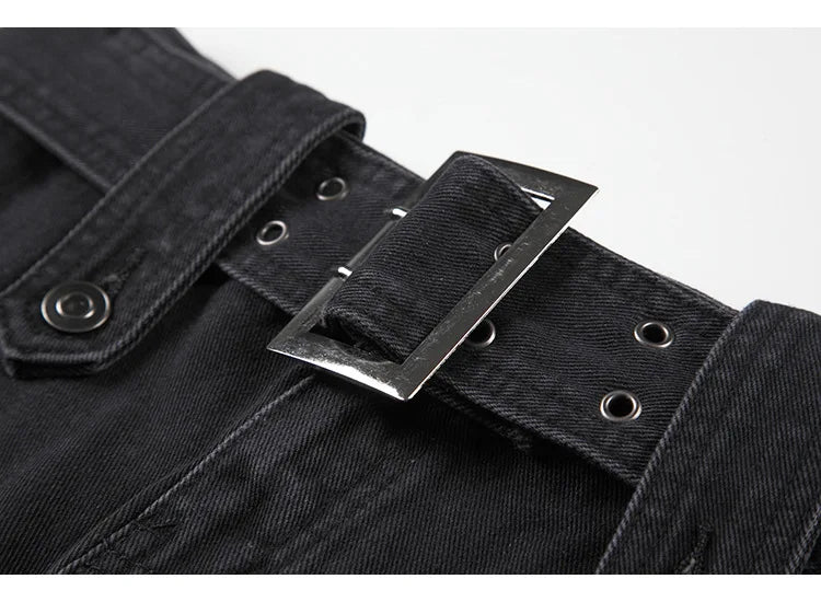 Fustă mini punk neagră din denim cu curea metalică Vezi opțiunile