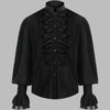 Cămașă neagră metal cu jabou și manșete din dantelă, mărimea 4XL