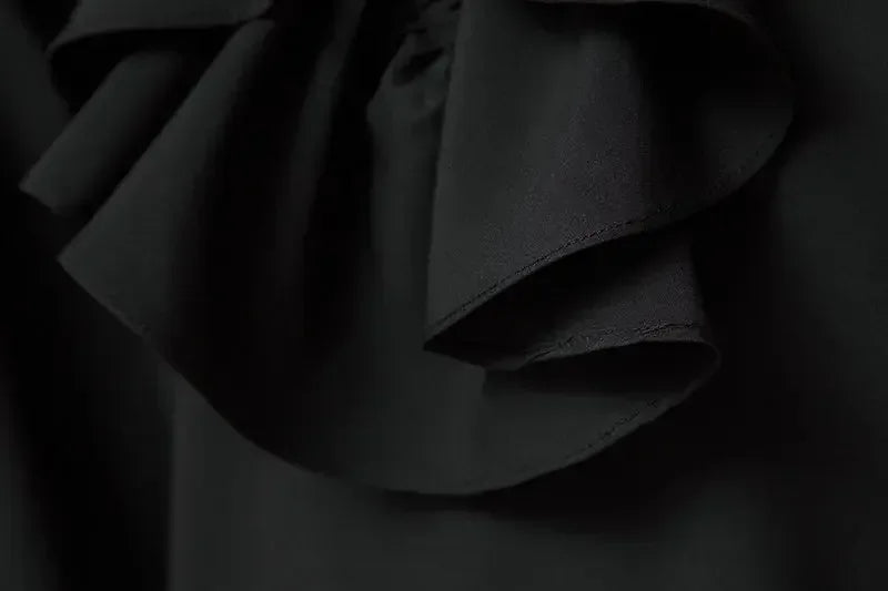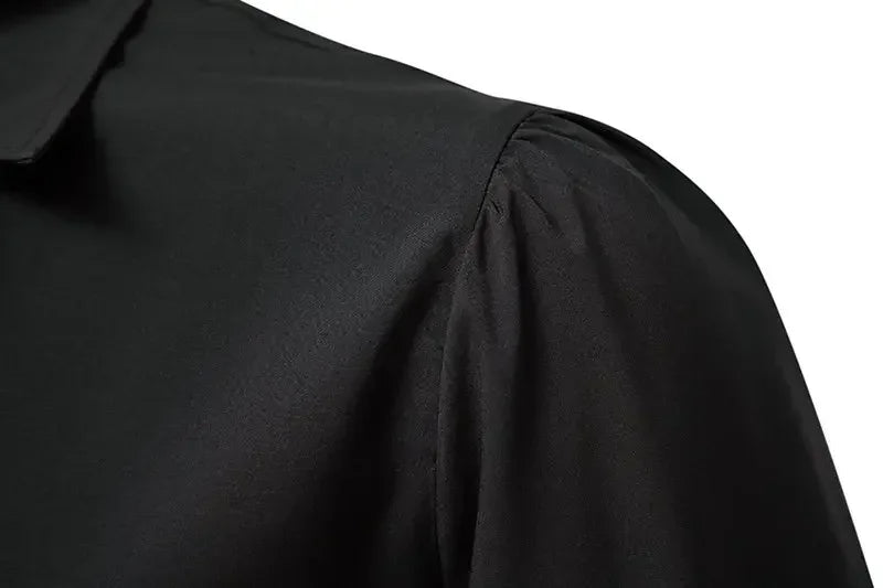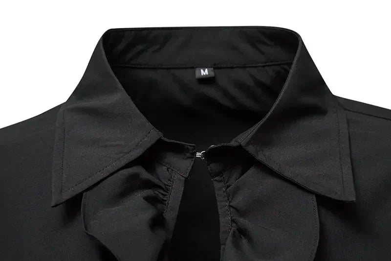 Cămașă rock neagră cu manșete din dantelă și jabou