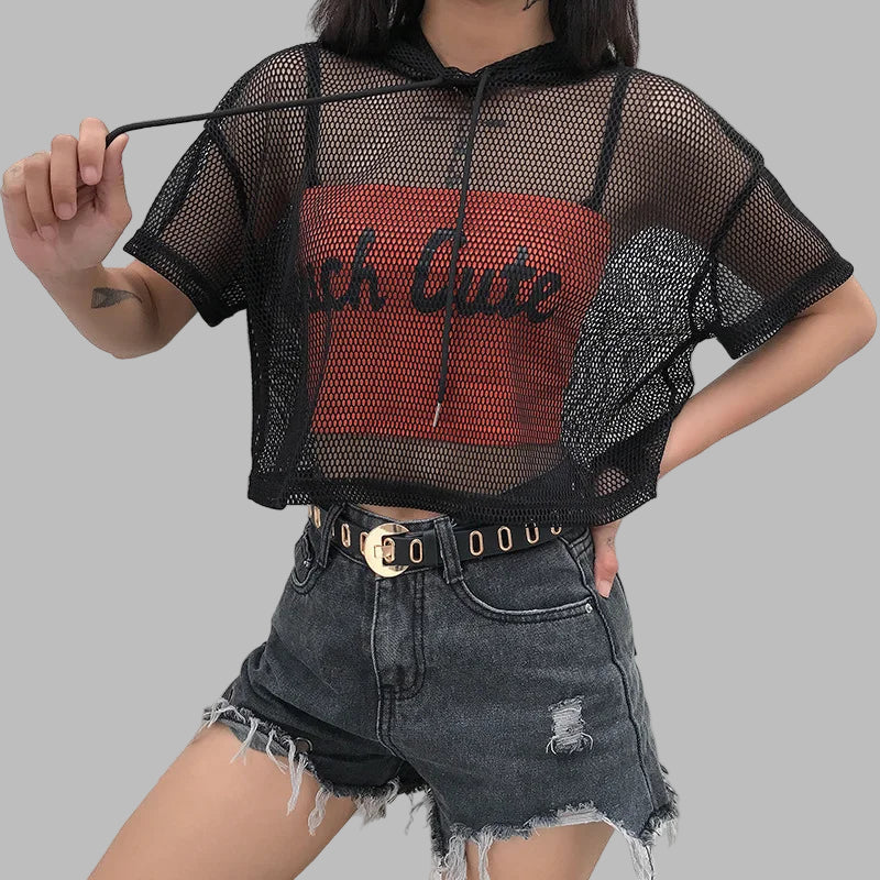 Tricou punk negru cu plasă și glugă Vezi opțiunile