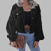 Geacă neagră oversize din catifea reiată grunge cu buzunare