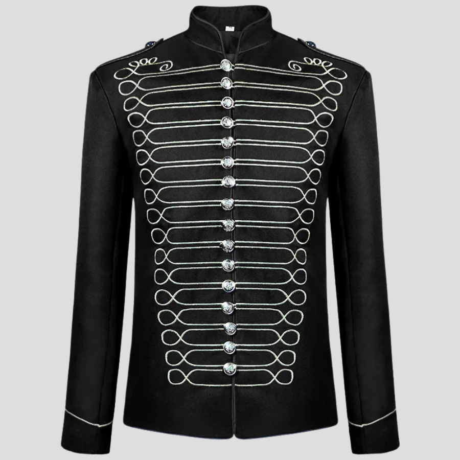 Geacă steampunk neagră cu șnururi decorative albe pentru bărbați