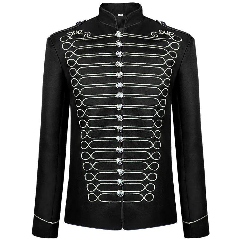 Geacă steampunk neagră cu șnururi decorative albe pentru bărbați Vezi opțiunile