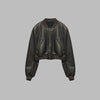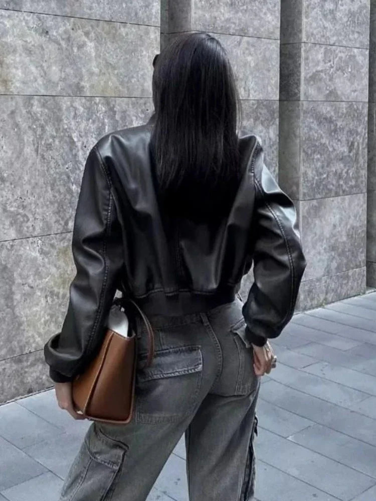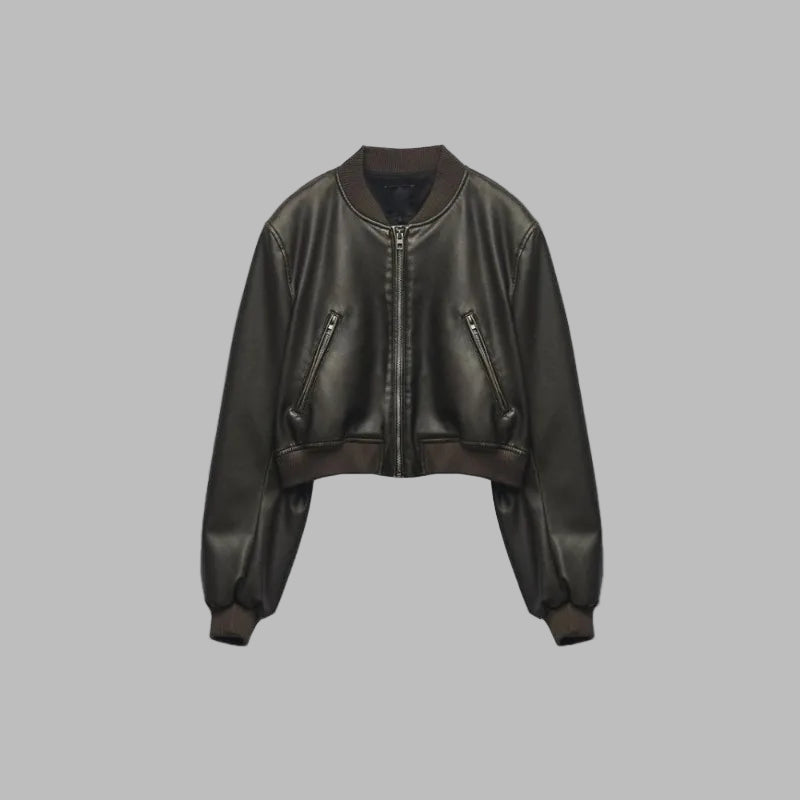 Geacă scurtă de damă din piele neagră, rock goth, cu fermoare