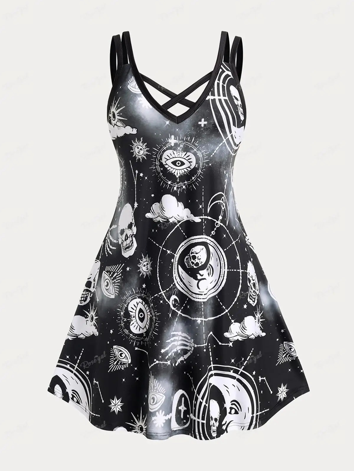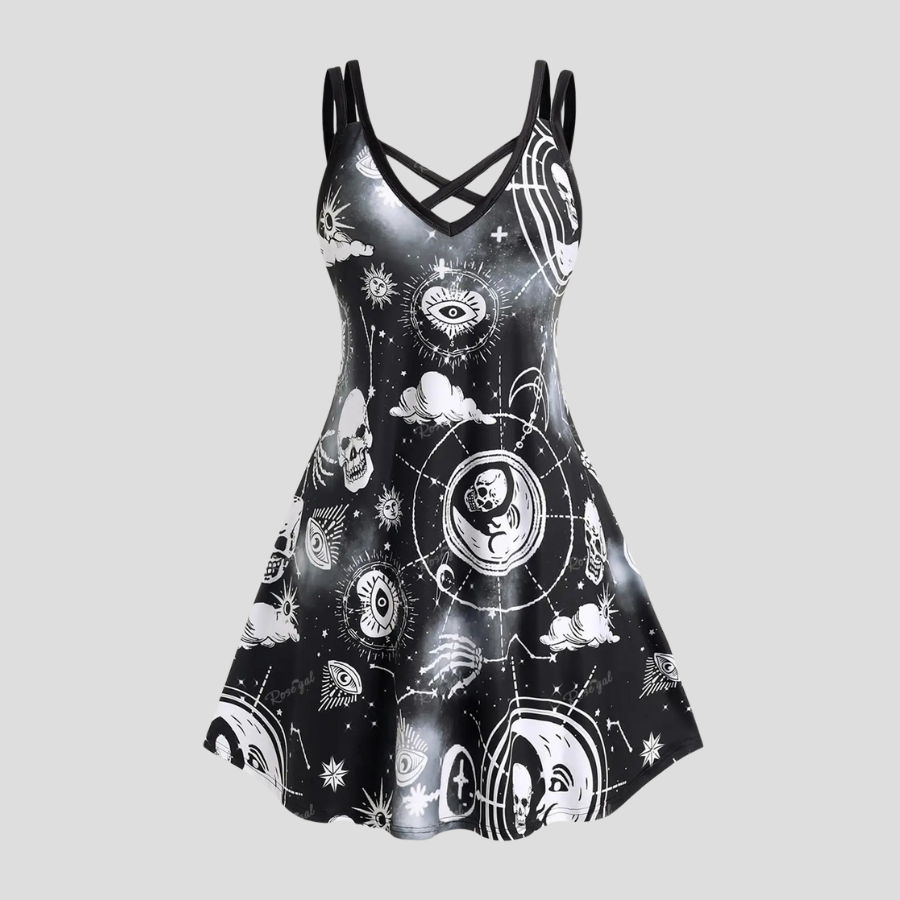 Rochie neagră punk rock cu simboluri oculte și stele Vezi opțiunile