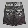 Pantaloni scurți negri din denim Metal cu cruci și săbii, stil grunge