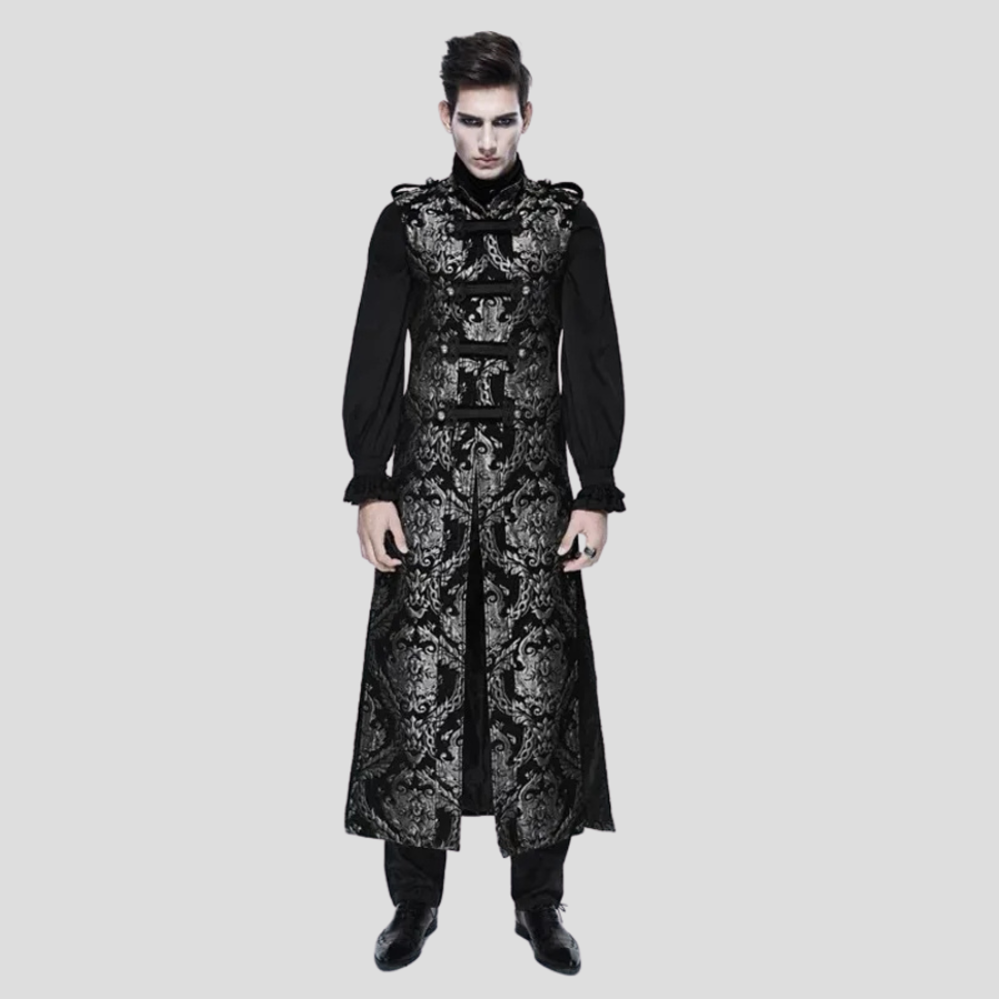 Palton negru steampunk goth cu model brocart și curele Vezi opțiunile