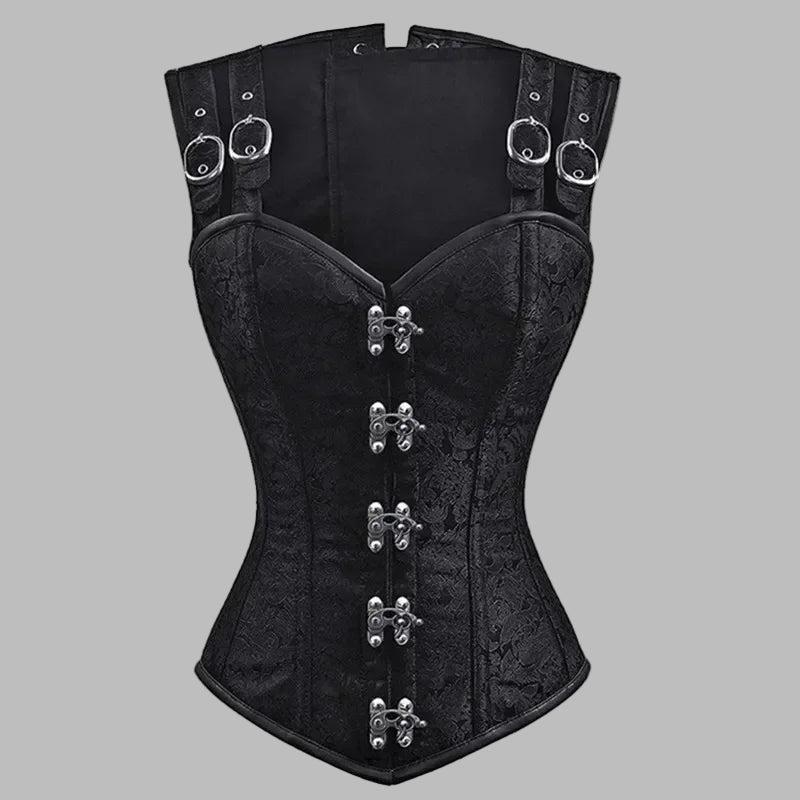 Corset punk gotic rock negru cu catarame și ținte metalice
