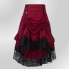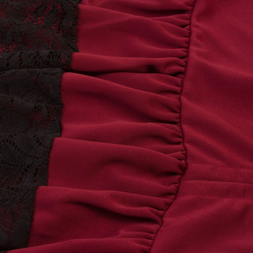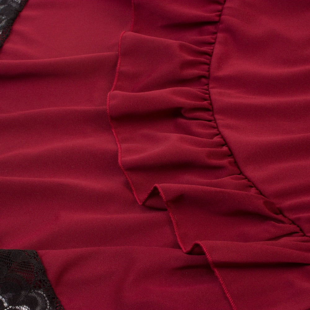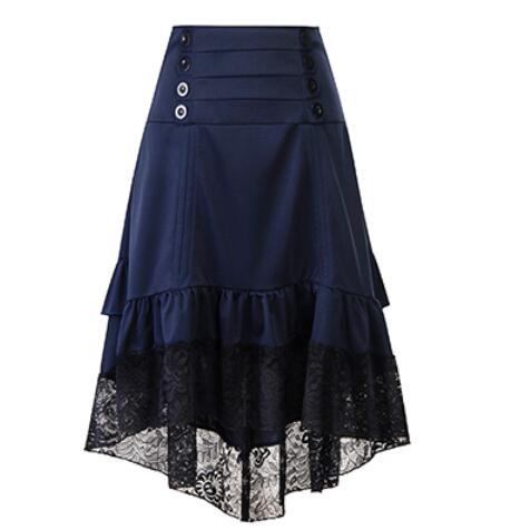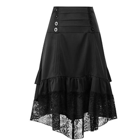• Decorațiuni: volane pe țesătură, dantelă florală neagră, nasturi în fața fustei