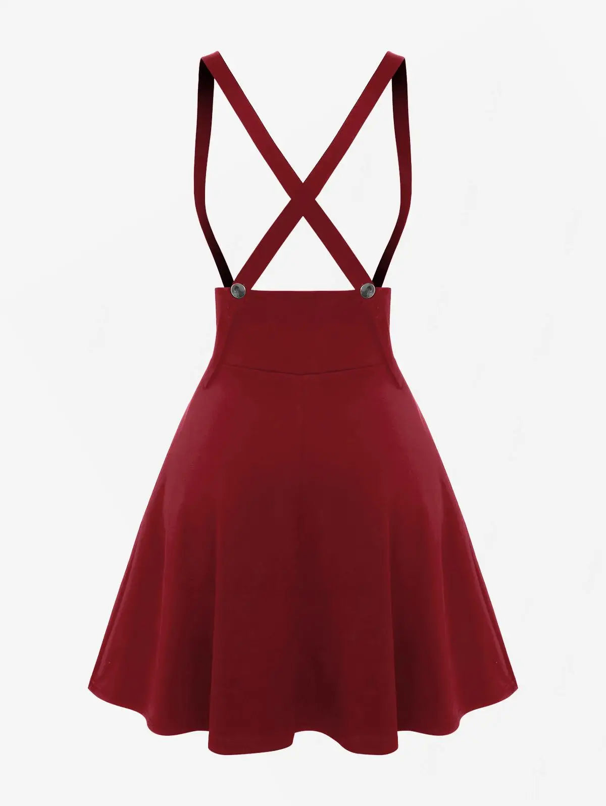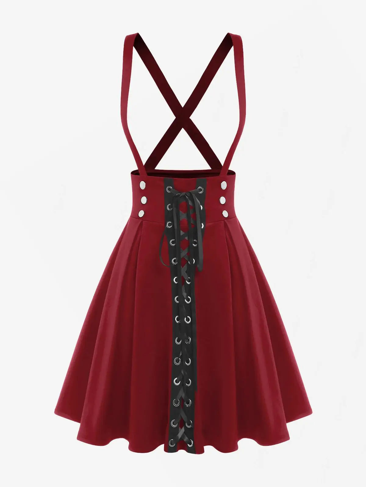 Fustă roșie Jirai Kei cu bretele și șiret corset Vezi opțiunile