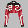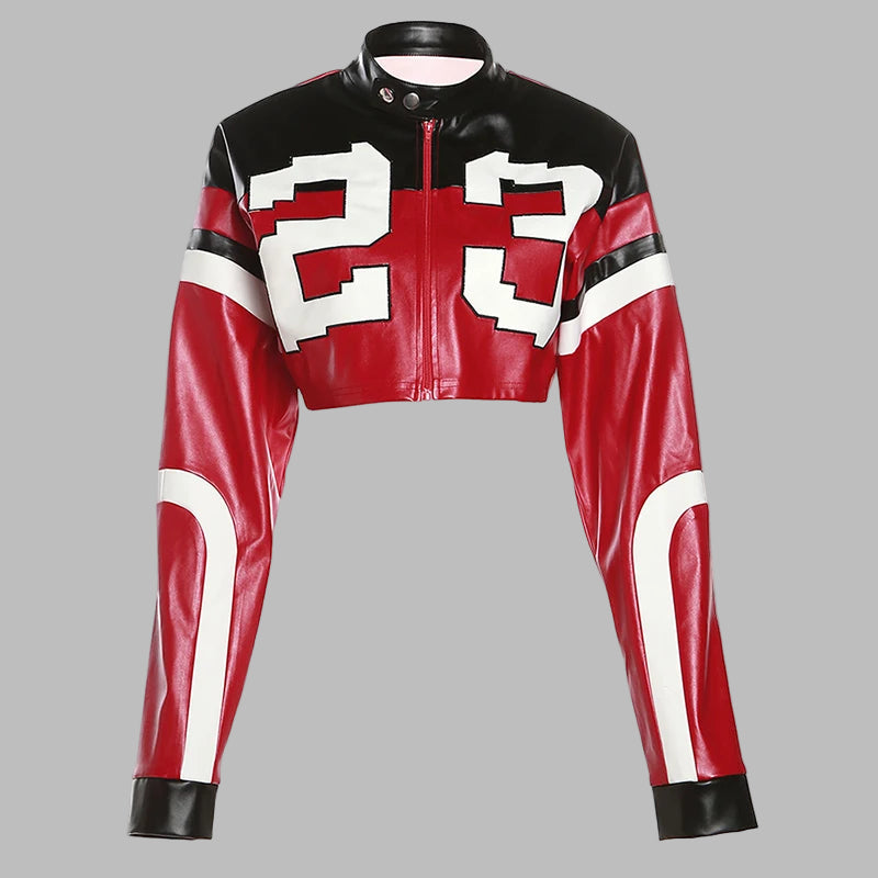 Geacă scurtă crop roșu-negru, stil grunge rock