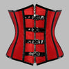 Corset roșu punk rock cu bretele negre din piele 6XL