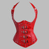 Corset roșu punk rock cu bretele și catarame
