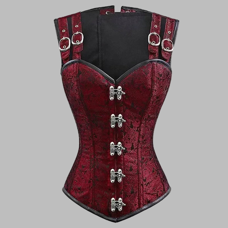 Corset roșu metal cu închidere cu cârlige și accente punk rock Vezi opțiunile