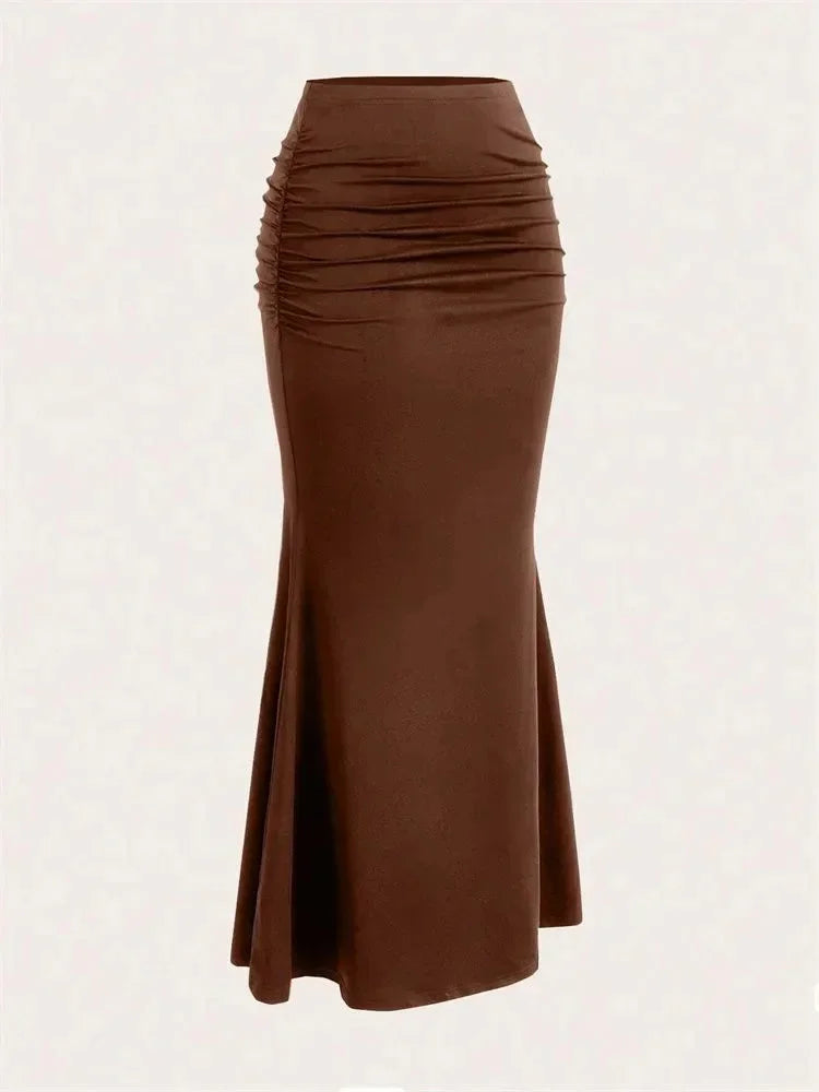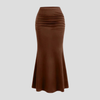Fustă lungă maro tip sirenă, cu drapaje în talie