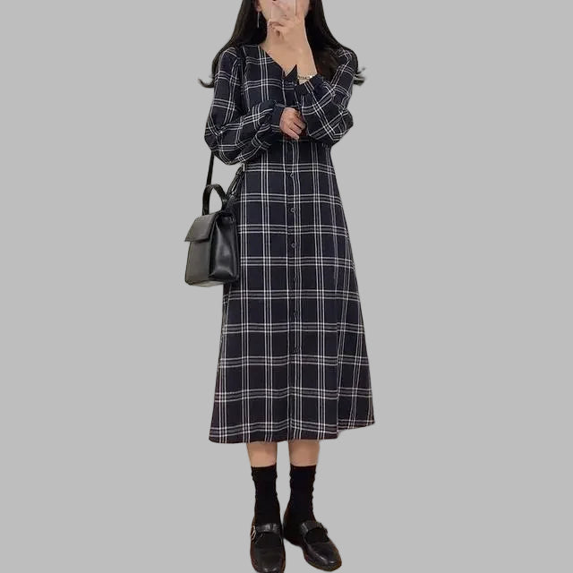 Rochie lungă punk neagră în carouri cu mâneci, mărimea XXL