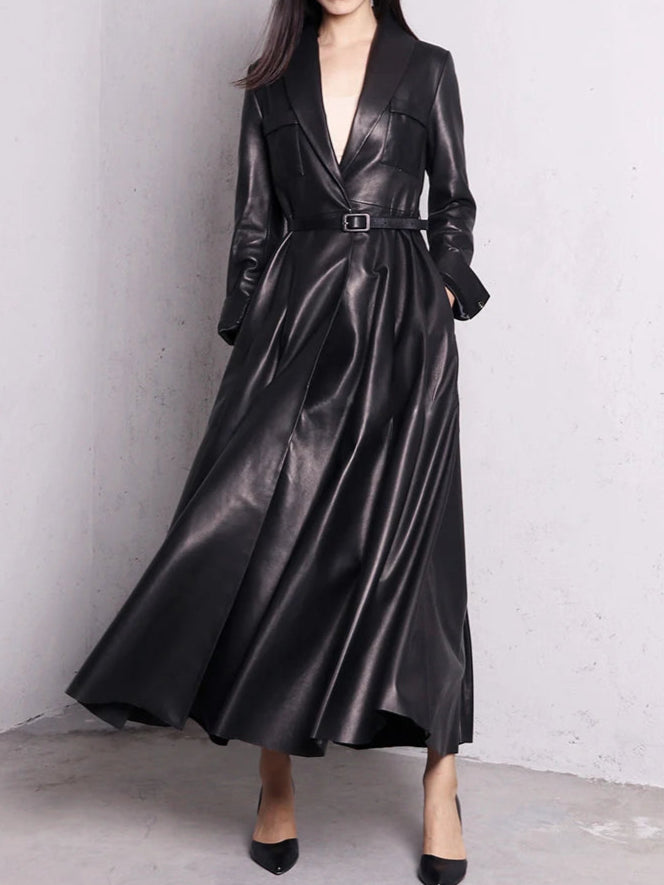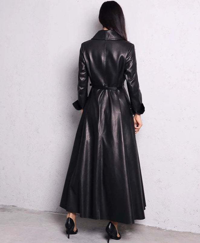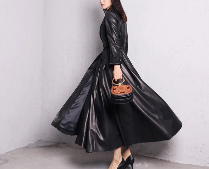 Palton lung din piele, negru, elegant, stil metal goth rock