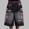 Pantaloni scurți lungi din denim punk cu imprimeuri roz roz și curea