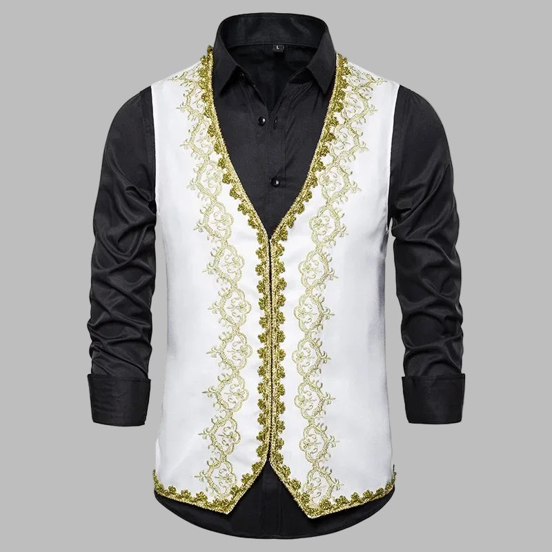 Vestă steampunk elegantă albă cu broderie aurie Vezi opțiunile