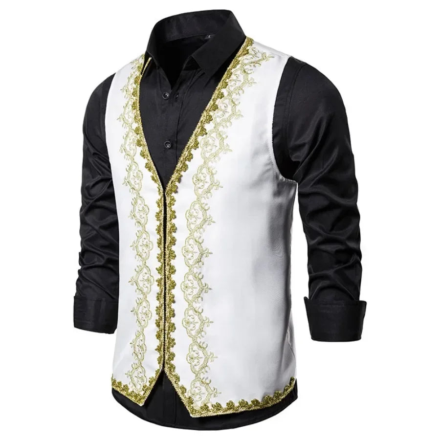 Vestă steampunk elegantă albă cu broderie aurie, mărimea XXL