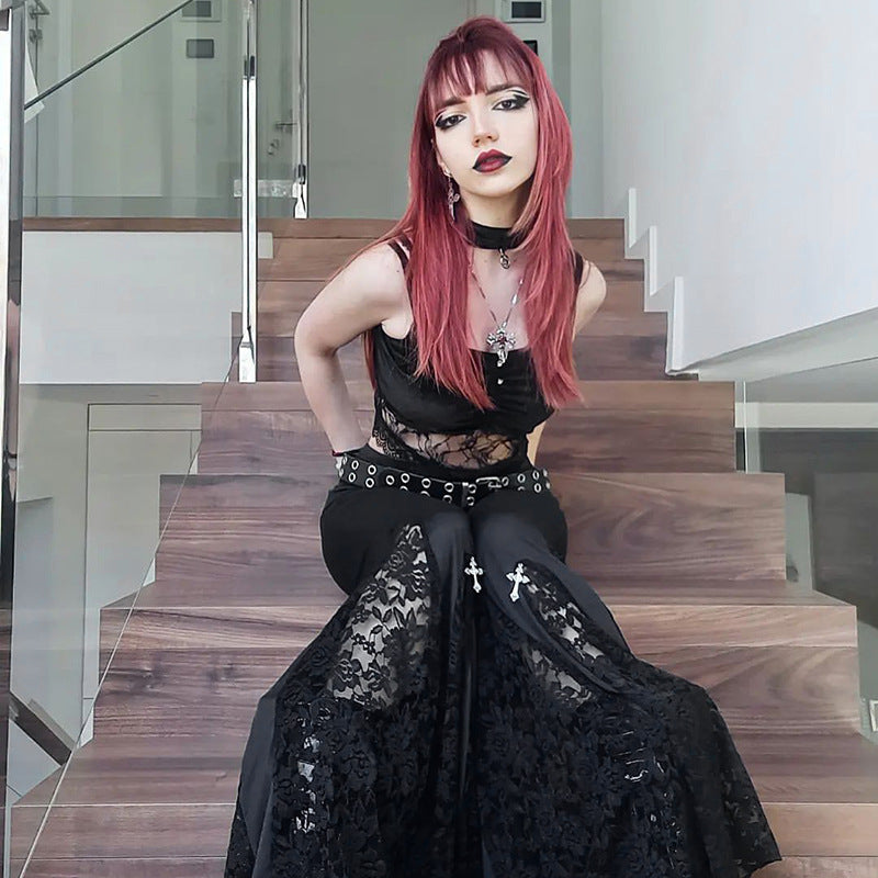 • Detalii Subtile: Detaliile decorative cu efect de decupaj conferă acestor pantaloni un aer misterios. Hollow out adaugă un accent gotic subtil, completând perfect aspectul general al piesei vestimentare.