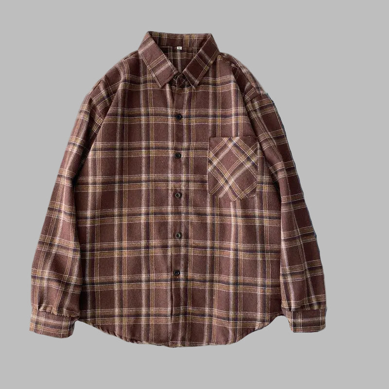 Cămașă flanelată maro cu carouri punk rock, cu buzunar