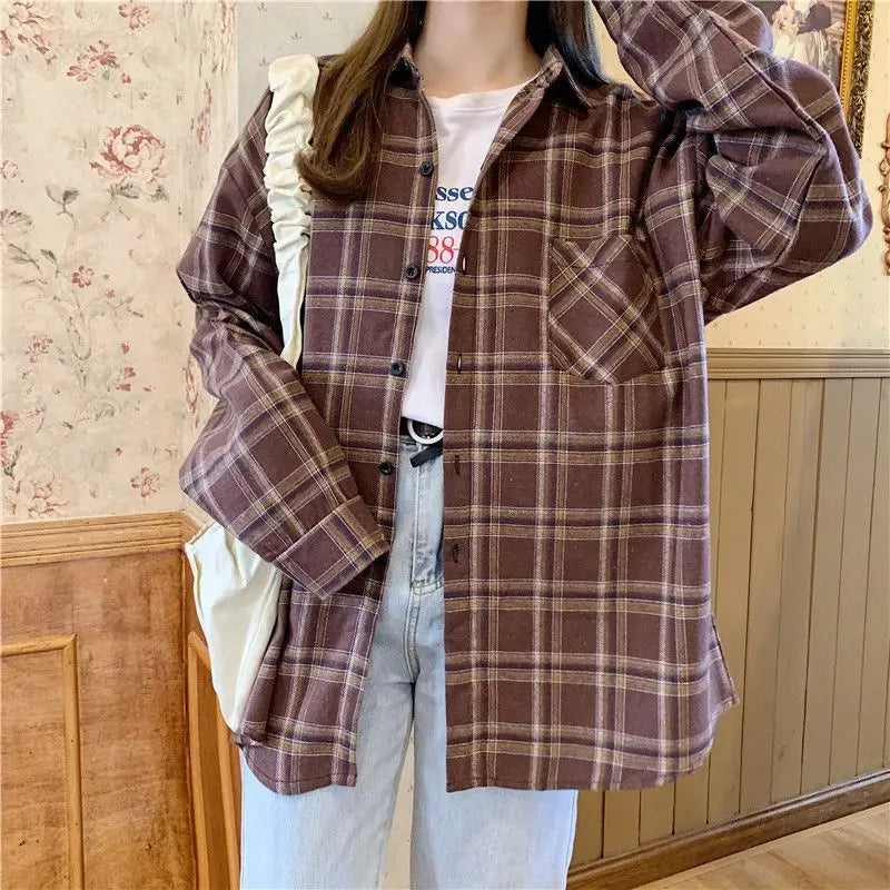 Cămașă flanelată maro cu carouri punk rock, cu buzunar Vezi opțiunile