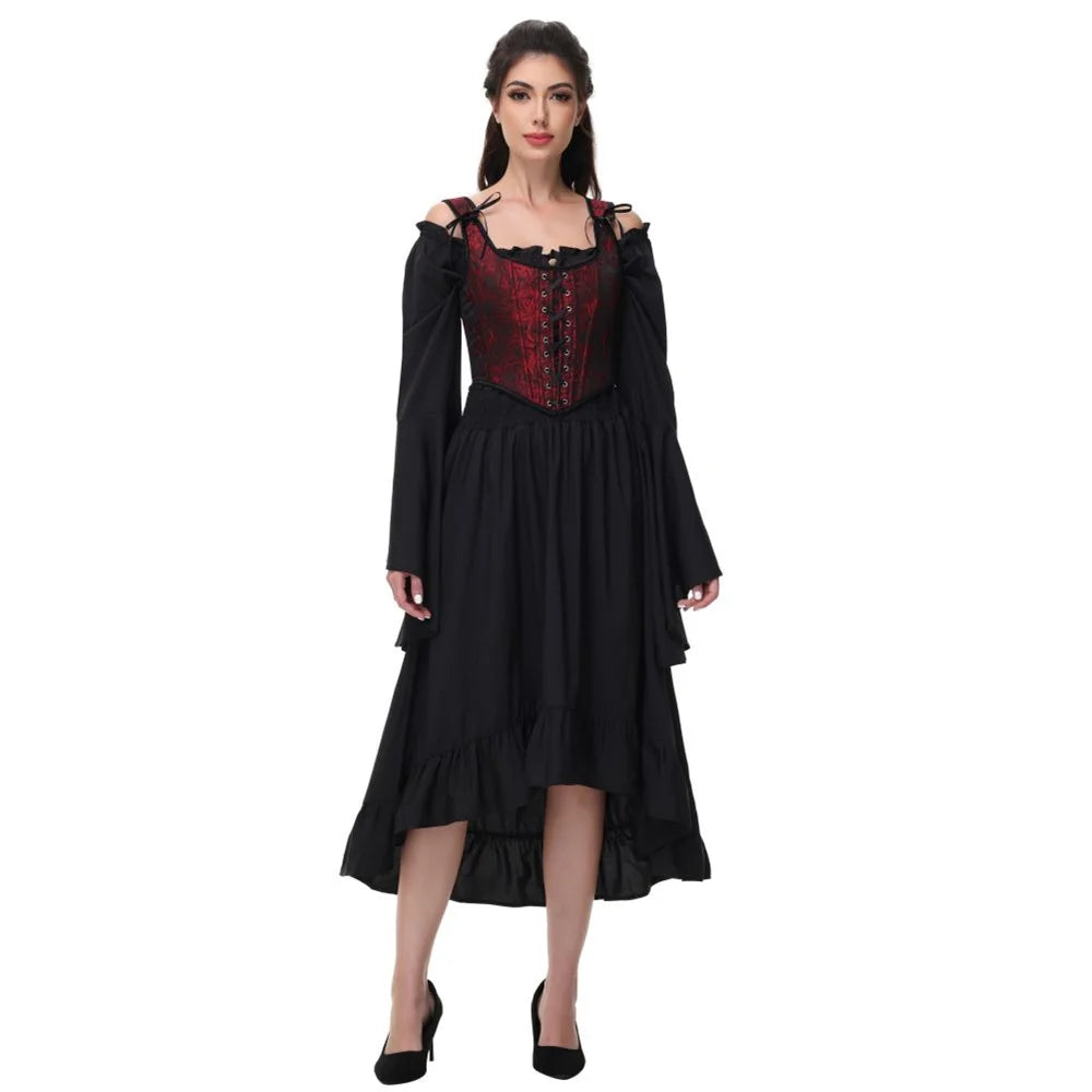 Corset gotic roșu-negru cu dantelare, imprimeu cu trandafiri și bretele Vezi opțiunile