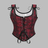 Corset gotic roșu-negru cu trandafiri, cu șnur și bretele