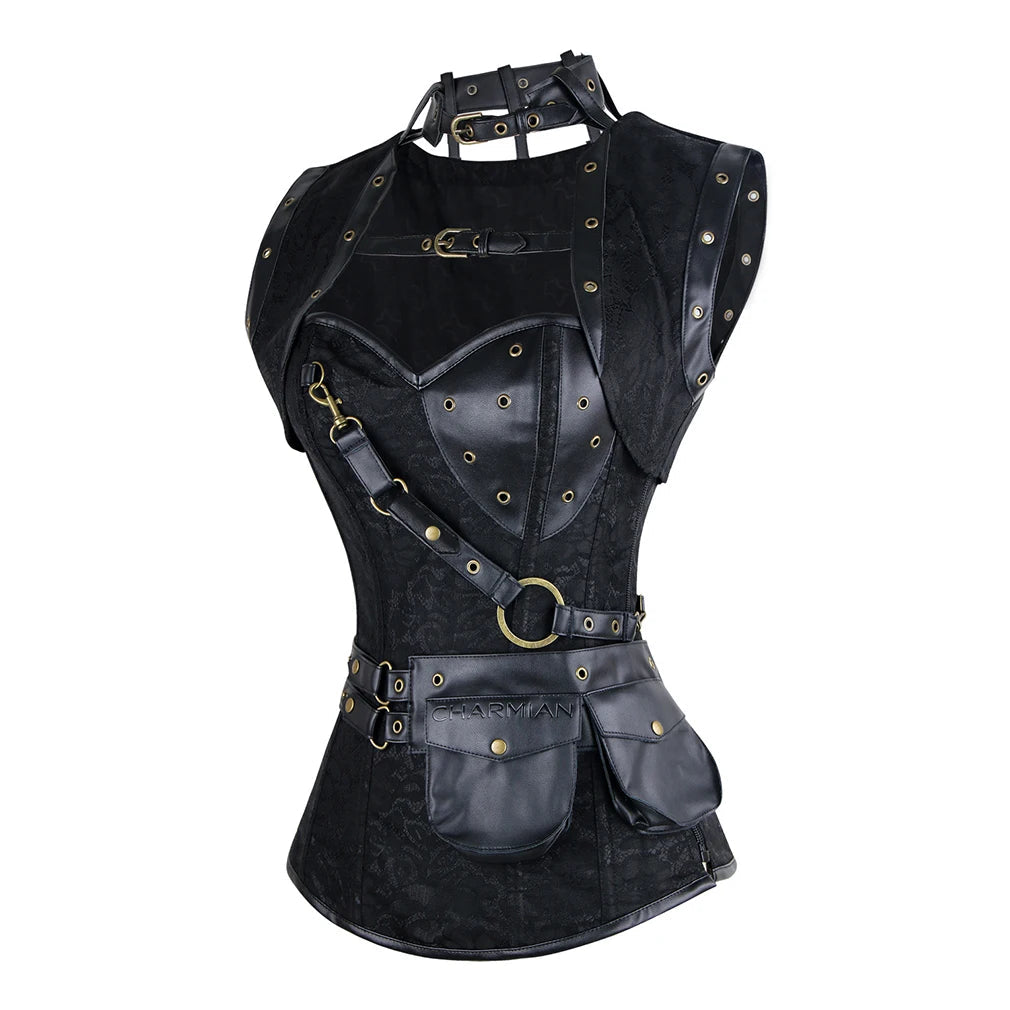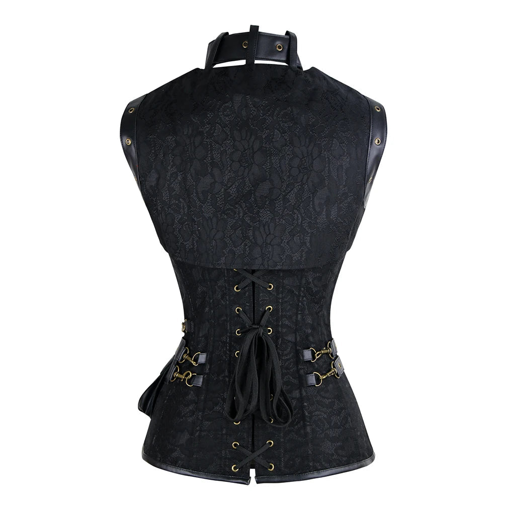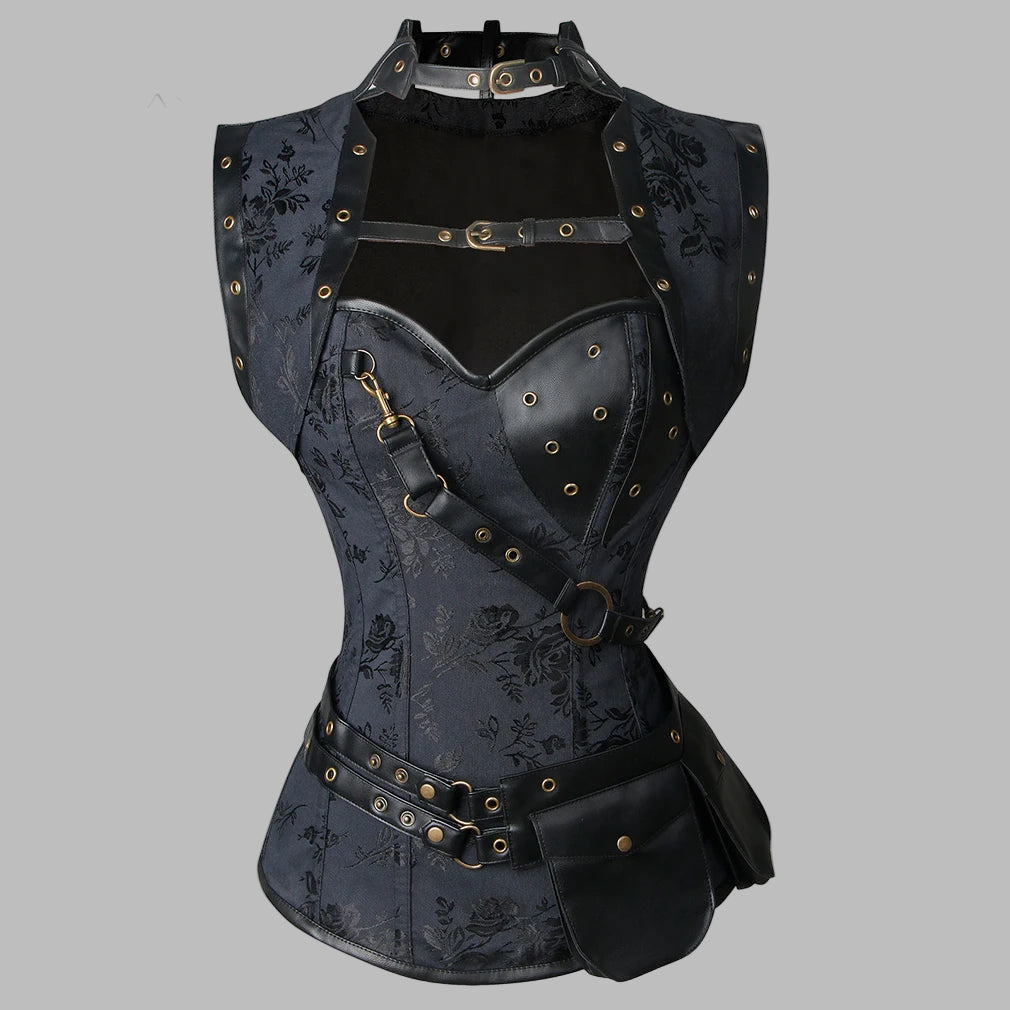 Corset gotic steampunk cu model floral și bretele din piele Vezi opțiunile