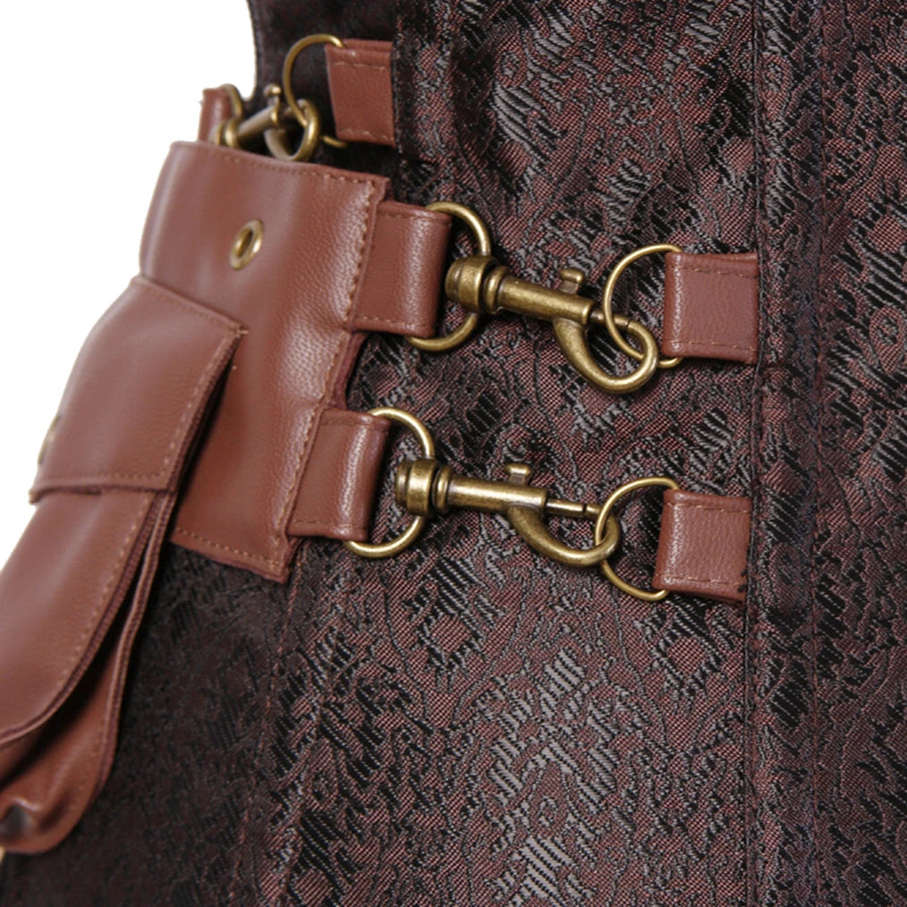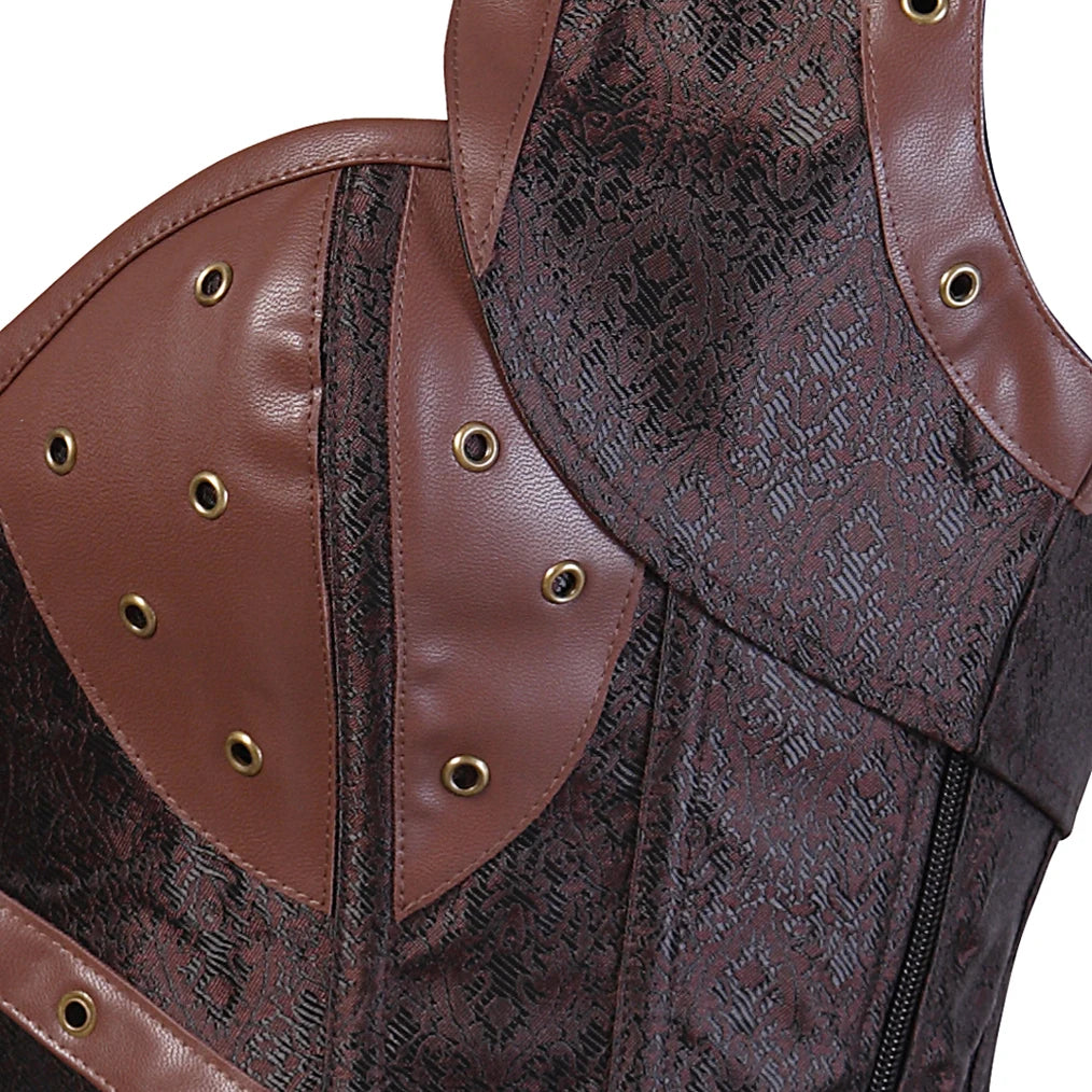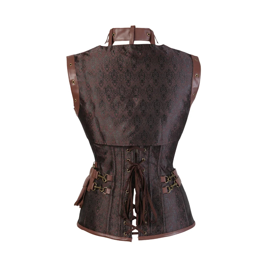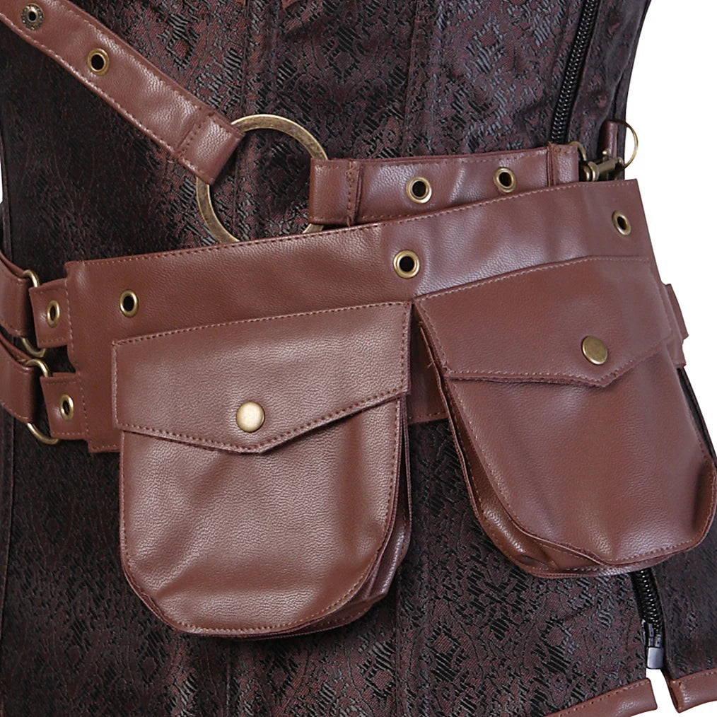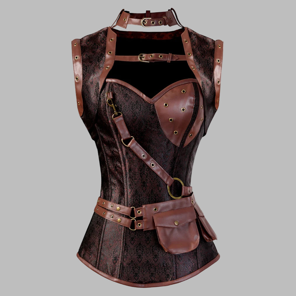 Corset steampunk din piele maro cu bretele decorative Vezi opțiunile