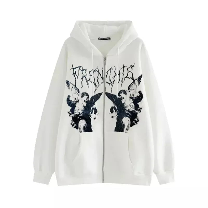Hanorac gotic cu glugă, stil anii 2000, alb
